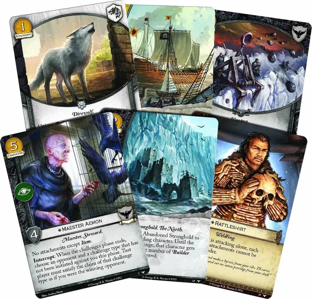 βWhen dead men come hunting in the night, do you think it matters who sits the Iron Throne?β βOld Bear Mormont, A Game of Thrones At the northern edge of the Seven Kingdoms, there is the Wall. Built from massive blocks of ice and guarded by ancient, forgotten spells, it towers over 700 feet tall, forbidding entry to all who dwell beyond. A wall is only as strong as its defenders, and here, those defenders are the Nightβs Watch. In the Nightβs Watch, all men are brothers. Knights, lords, and the brothers of kings rub shoulders with slavers, murderers, and the scum of Westeros. Their task is grim and cold and thanklessβno songs will ever be sung for them. Yet their vigilance is all that protects the southern lands from wildlings and the Others. Travel north and join the Nightβs Watch with the Watchers on the Wall deluxe expansion for A Game of Thrones: The Card Game! Within this expansion, the Nightβs Watch explores new and existing themes, as you find new ways to defend the Wall, new ways to conscript your opponentβs characters, and plenty of rewards for focusing on the three branches of the Nightβs Watch: Rangers, Stewards, and Builders. Along with the nameless men who swell the ranks of the Nightβs Watch, youβll find new versions of iconic characters from throughout the saga, including Jon Snow, Old Bear Mormont, Maester Aemon, and Samwell Tarly. And although the focus of this expansion rests on the Nightβs Watch, youβll find two new non-loyal cards for every other faction, expanding your options for any alliance. Youβll also receive an assortment of neutral cards portraying the Nightβs Watchβs most common enemies, the Wildlings. With seven new plots (one loyal to the Nightβs Watch) rounding out the expansion, Watchers on the Wall offers new pathways to victory for every deck.
