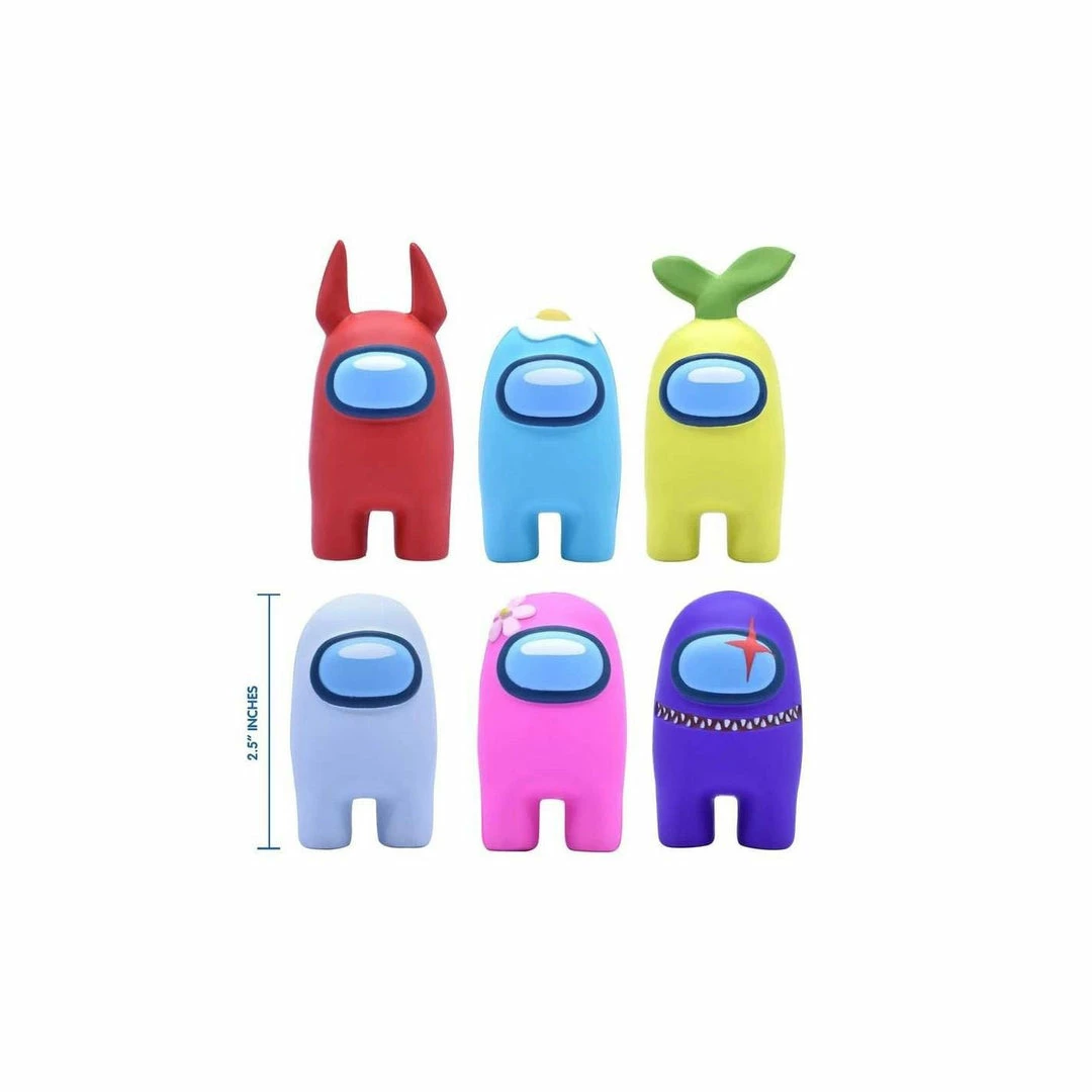 Officially licensed Among Us SquishMe. โข Collect all 6 Among Us SquishMe characters, including a red, white, blue, purple, pink and yellow characters with different accessories. โข Made from safe, high quality, extra soft polyurethane foam. โข Includes one (1) random Among Us SquishMe toy. Each purchase comes blind and at random.