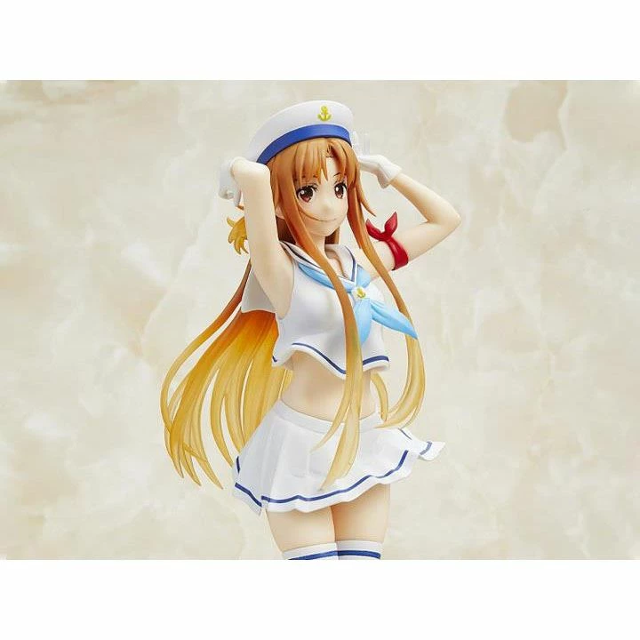 Asuna joins the Coreful Figure line sporting a marine inspired outfit! She stretches up her arms to adjust her beret ever so sweetly. Nearly 8 inches tall and standing on a base, she is an adorable addition to any Sword Art Online collection.