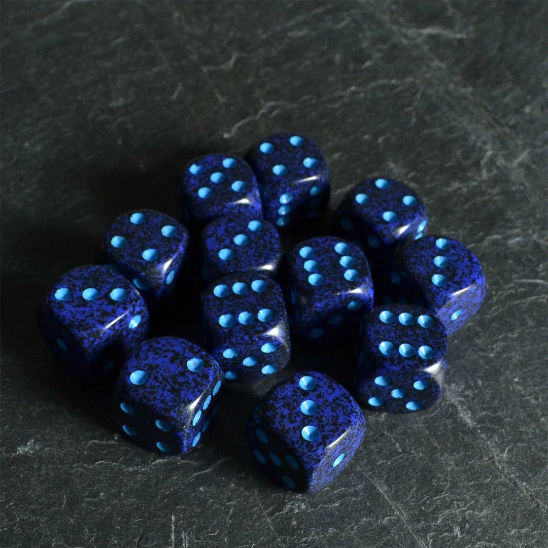 Set of 12 Speckled 16mm pipped D6 Dice in Cobalt colour by Chessex.