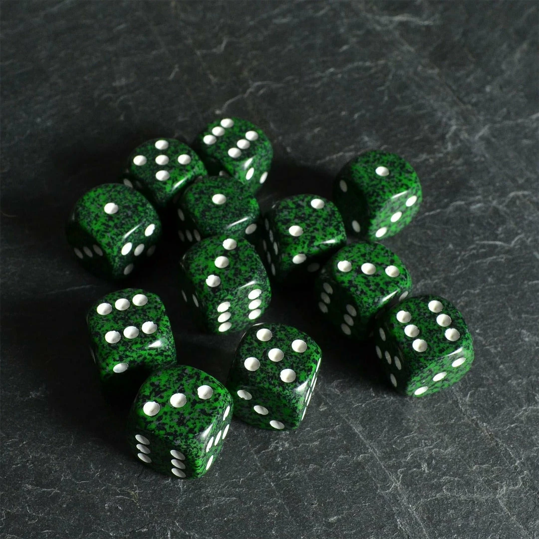 Set of 12 Speckled 16mm pipped D6 Dice in Recon colour by Chessex.