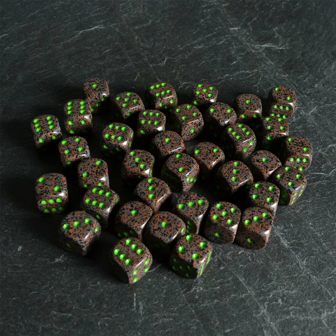 Set of 36 Speckled 12mm pipped D6 Dice in the colour Earth by Chessex.