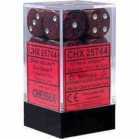 Set of 12 Speckled 16mm pipped D6 Dice in Silver Volcano colour by Chessex.