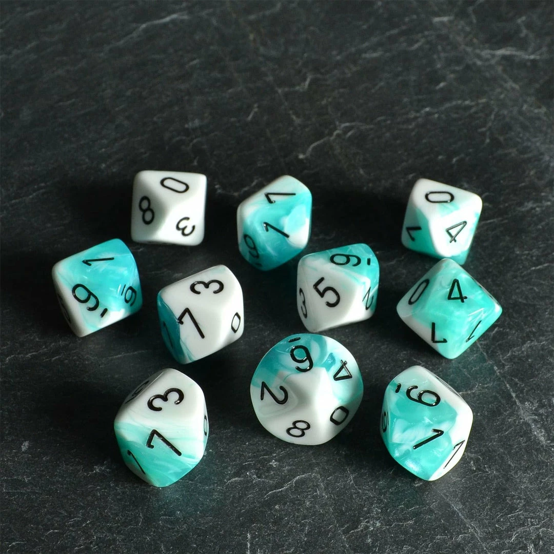 Set of 10 Gemini D10 Dice in the colour White/Black from Chessex.