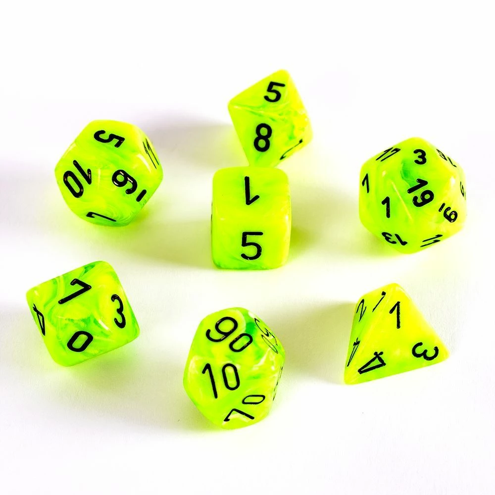 Best reviews of 🤩 Chessex Vortex Bright Green/Black Polyhedral 7 Die Set Tabletop 🔥