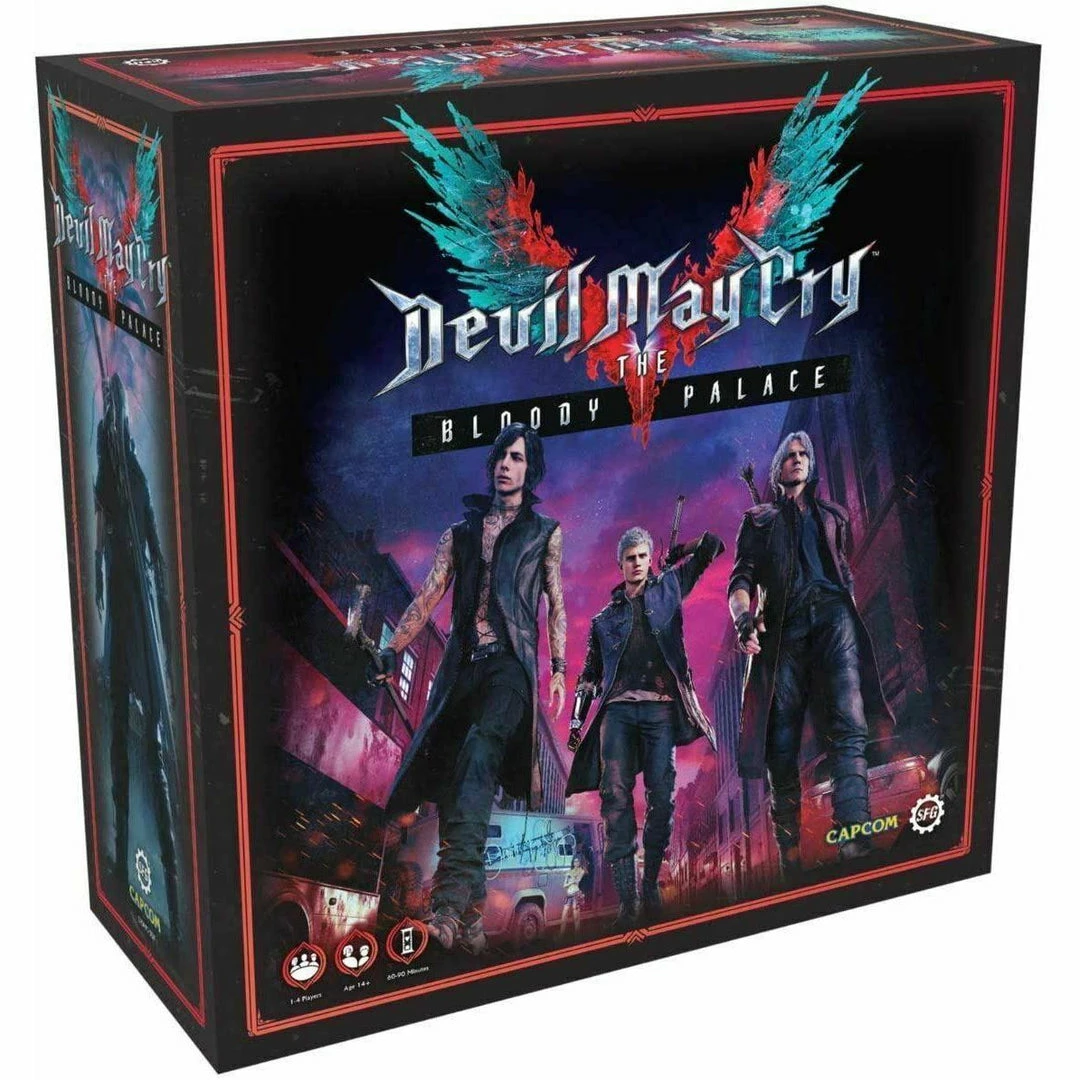 This board game is based on the Bloody Palace mode from the critically acclaimed Devil May Cry 5 video game. Devil May Cry: The Bloody Palace is a dynamic and fast-paced board game for 1 to 4 players where style counts for everything. Players each take control of an iconic Devil May CryΒ devil hunter and try to outscore each other by building the most impressive attack combos and achieving the highest style rank. Contents: β 4x Devil Hunter (V & Shadow, Trish, Nero, Dante) β 12x Empusa β 4x Hell Antenora β 4x Scudo Angelo β 1x Proto Angelo β 1x Empusa Queen β 1x Riot β 1x Elder Geryon Knight β Over 280 cards β All the tokens, tiles and rules youβll need to play. Miniatures supplied unpainted. Paints not included.