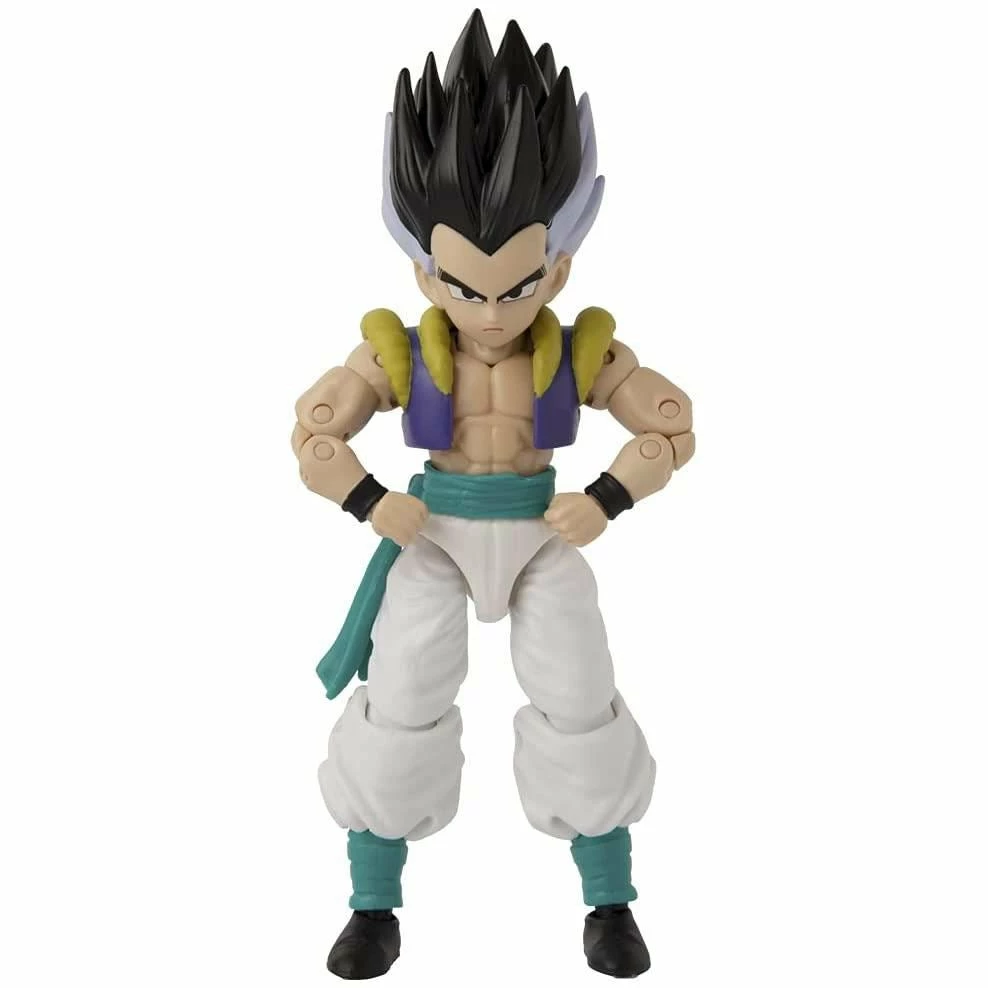 DRAGON BALL DRAGON STARS 17cm GOTENKS ACTION FIGURE: Fans, collectors, and kids of all ages will be thrilled by this 17cm Gotenks figure that allows them to step into the world of Dragon Stars DESIGN INSPIRED BY POPULAR ANIME TV SERIES: Bandaiโs Dragon Ball Super Dragon Stars figures are so authentic and realistic you can recreate the epic battles and favourite moments from the Anime TV show ANIME INSPIRED PACKAGING: Figure comes packaged with impressive and cool Japanese manga inspired design MULTIPLE HANDS AND AMAZING ARTICULATION: These high-quality, well-crafted 17cm scale figures come with multiple switchable hands to recreate scenes from the series, have over 15 points of articulation and are perfect for pose, play, or display A WHOLE DRAGON BALL WORLD AT HOME: Fans can collect more 17 cm Dragon Ball Dragon Stars figures from series 1, 2, and 3 (each sold separately by Bandai)