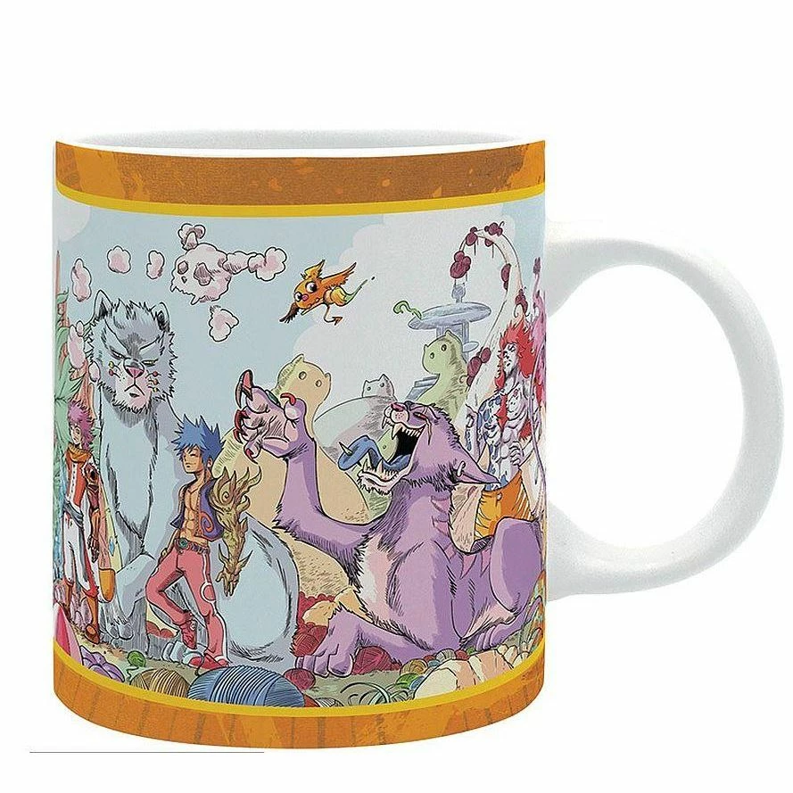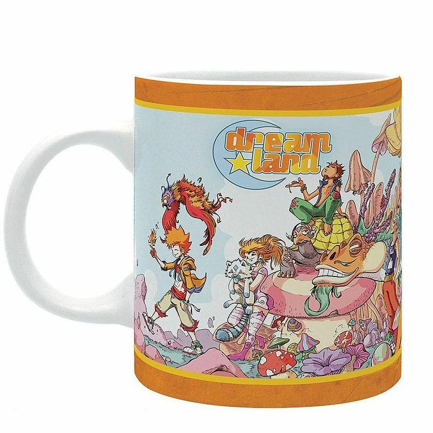 Start your morning with a buzz and dive into the chaos of Dreamland with this ‘Lucky Stars & Friends’ mug. Featuring the rich and colorful universe of Dreamland with the Lucky Stars and various iconic characters of the manga. Illustrations by Reno Lemaire, Dreamland manga author. Capacity: Standard size (320 ml) Material: Ceramic Packaging: Black window box. Dishwasher and microwave safe.