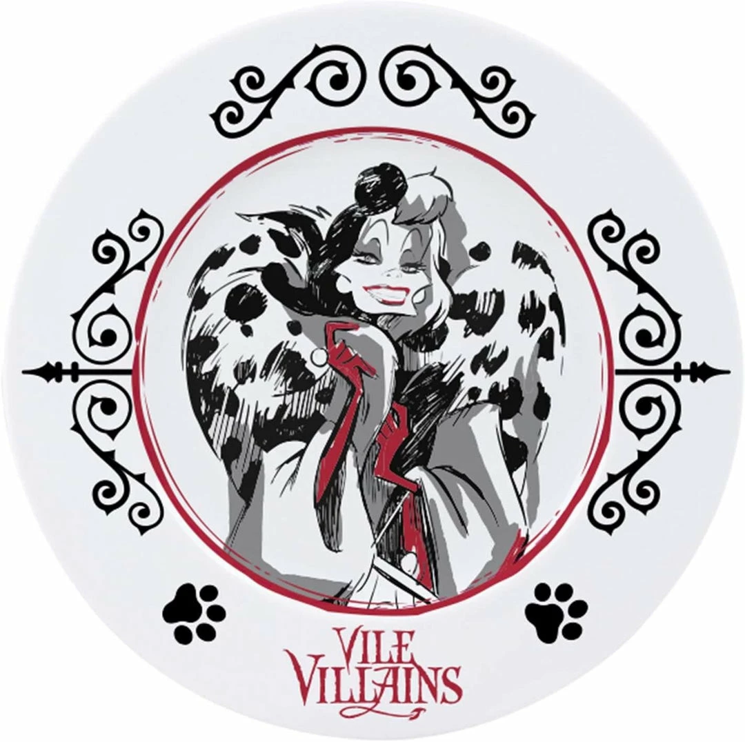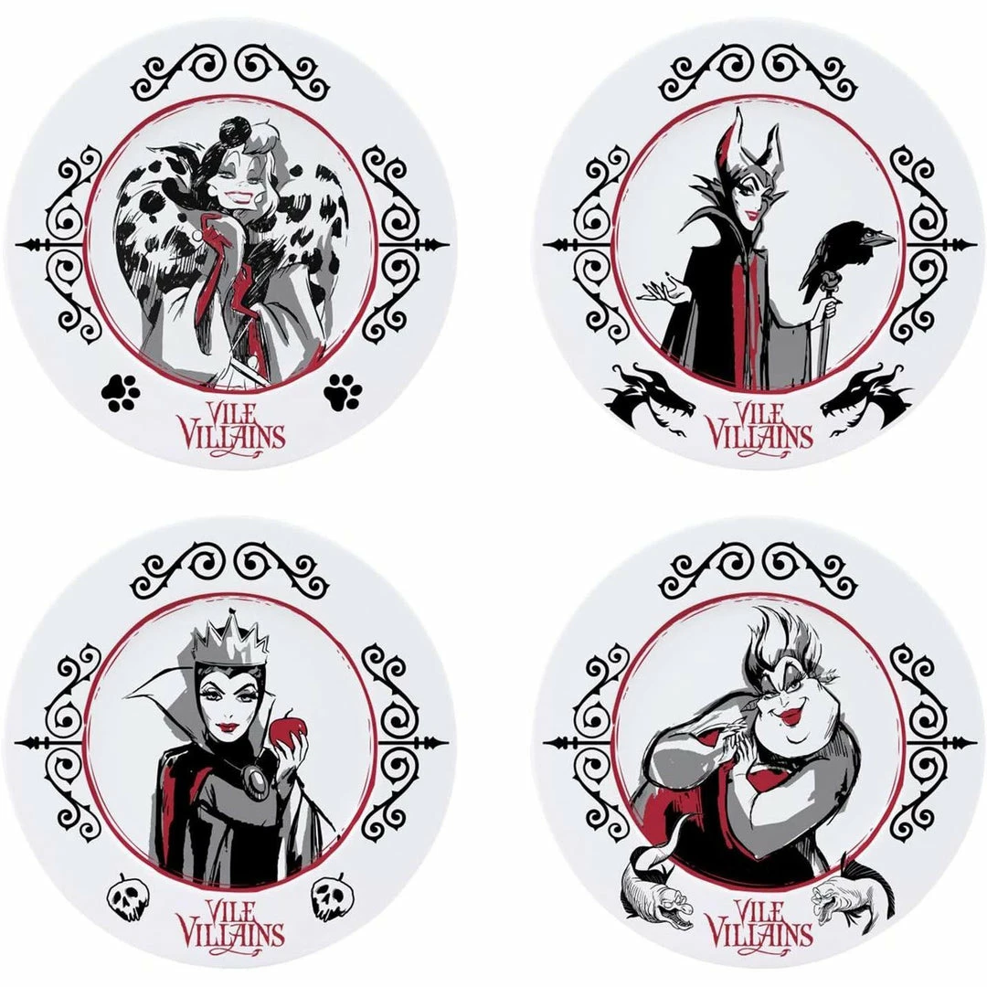 officially licensed Disney plates set of 4 with stylish character motifs for the Disney Villains with Cruella de Vil, Maleficent, Ursula and the evil queen microwave and dishwasher safe 21 cm each, color white
