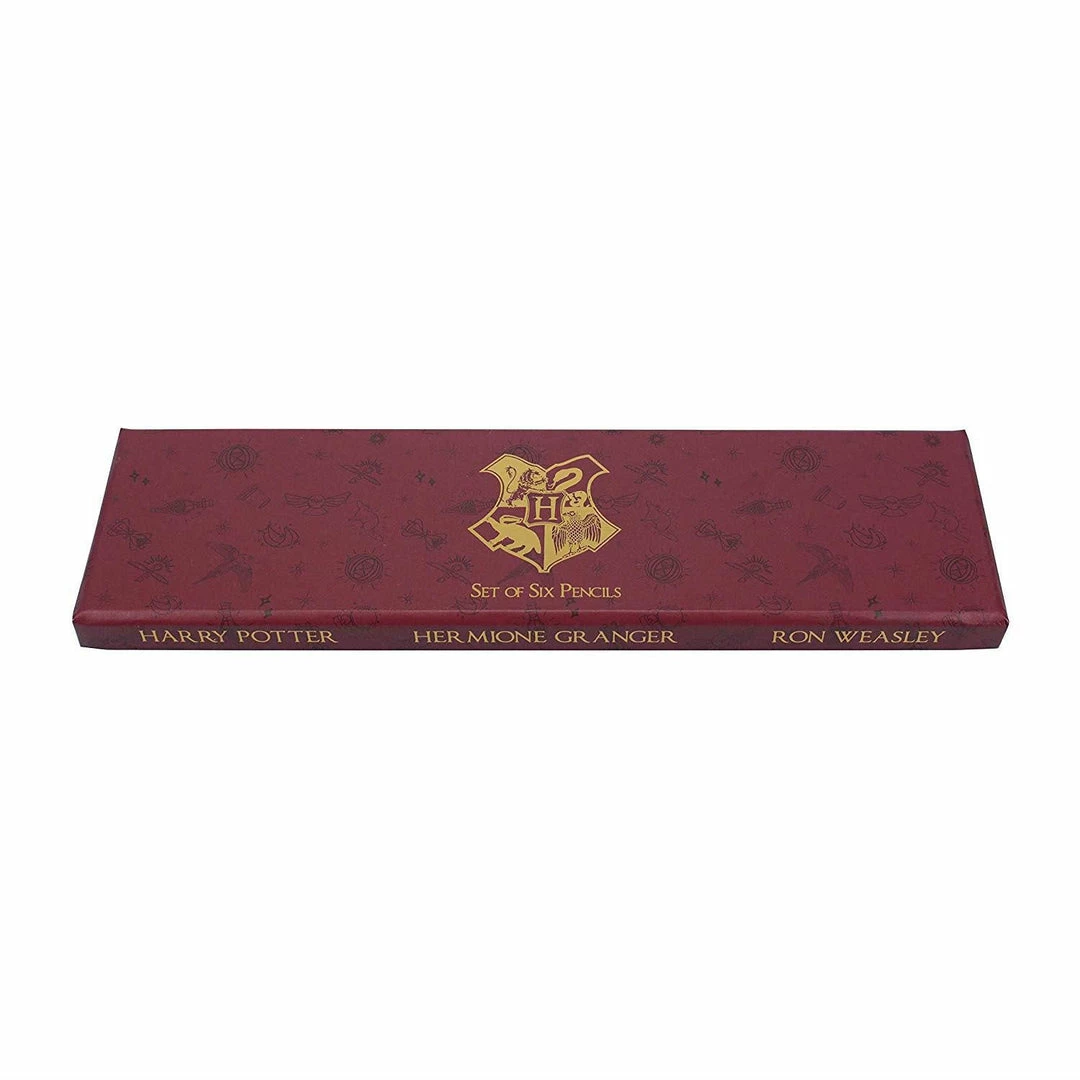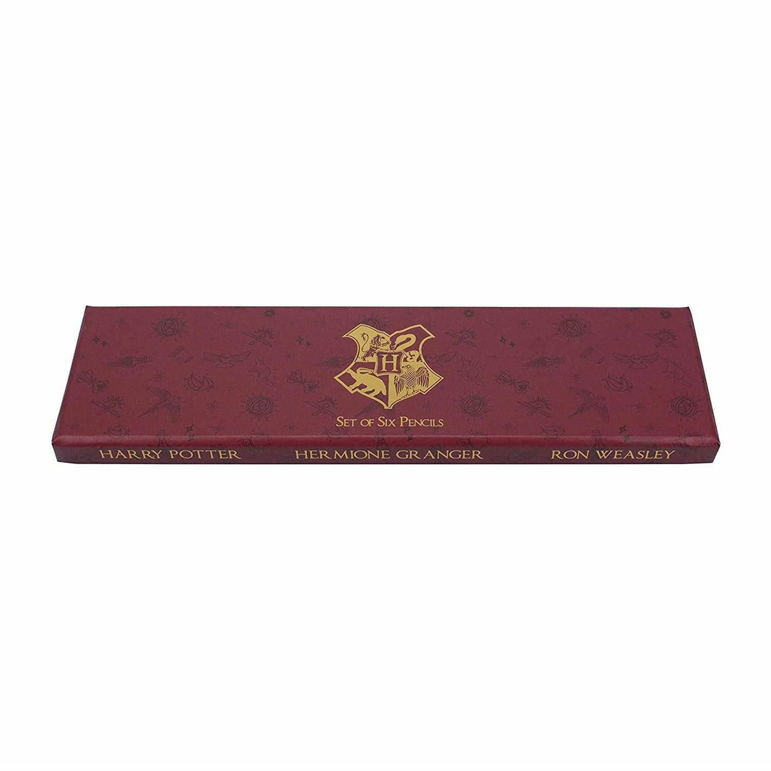 Officially licensed Harry Potter merchandise by Half Moon Bay Set of 6 pencils featuring Harry, Ron and Hermionie designs As well as illustrations of their wands 1 (h) x 20 (w) x 5.5 (d) cm Ideal for school, university or work