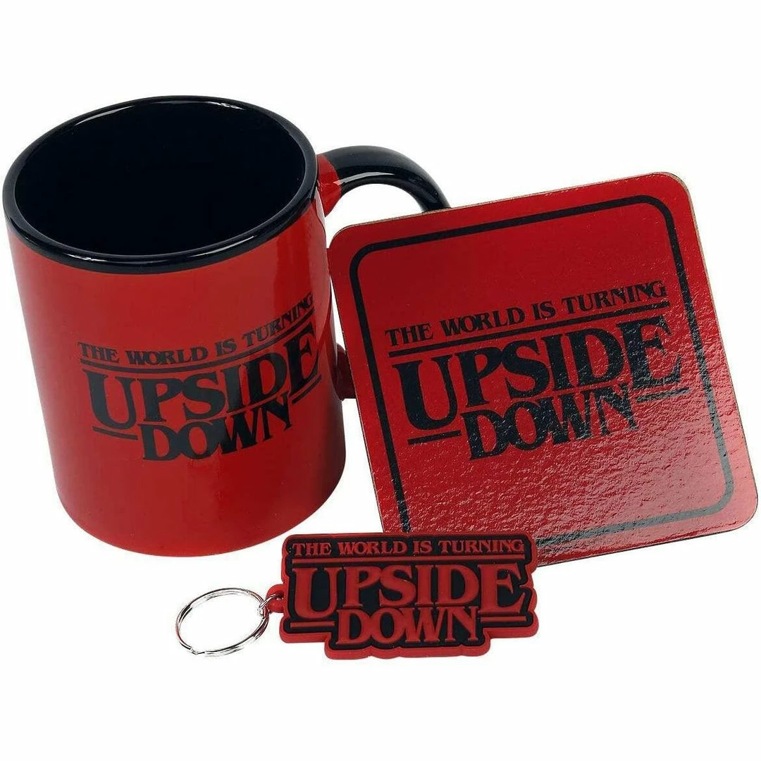 Amazing Stranger Things Themed Mug, Coaster & Keychain Gift Set Perfect Gift For Stranger Things Fans! Stranger Things – The World Is Turning Upside Down – Mug, Coaster & Keychain Gift Set