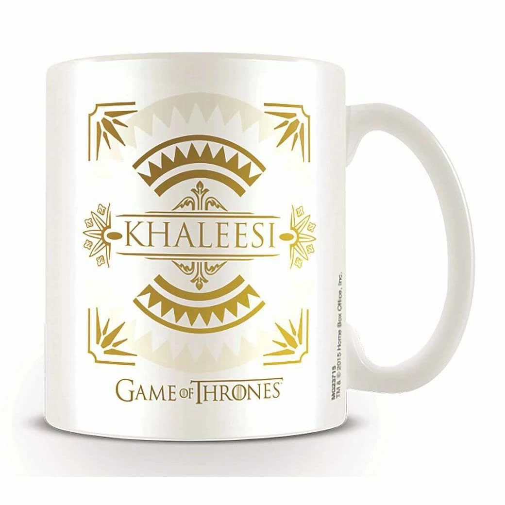 From Game of Thrones comes this Khaleesi Mug, featuring a gold, ornate design around the work Khaleesi on the front and back. Mug holds 11oz of your favourite beverage.