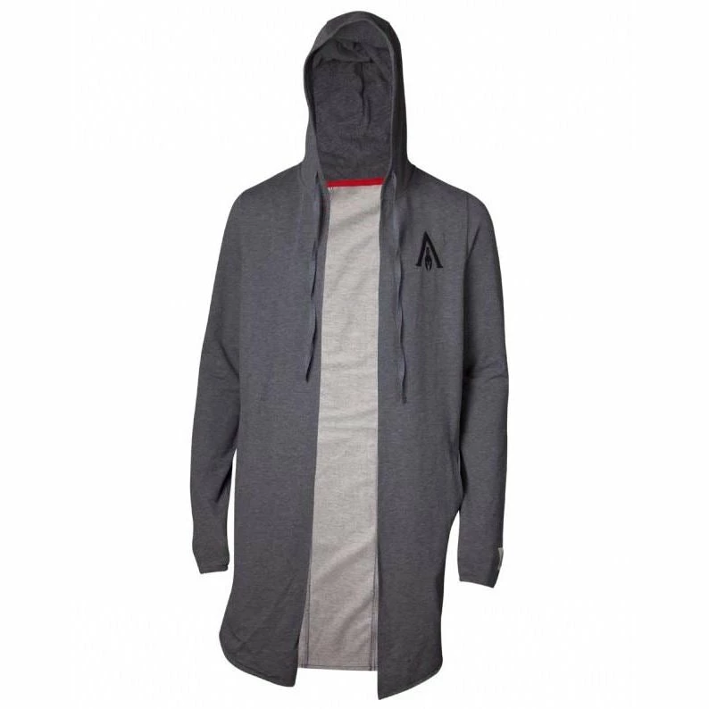 Officially licensed Assassin’s Creed hooded jacket small logo stick forward to the game Odyssey 56% Polyester, 40% Cotton, 4% Elastane Alexios lettering in Greek on the back front side pockets, hood with drawstring color gray
