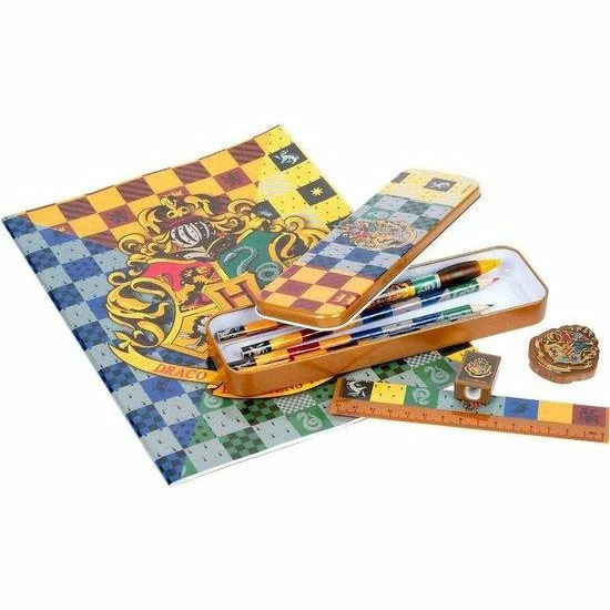 Harry Potter Hogwarts themed stationery set Contains: 4 Colouring pencils Ruler Pencil Sharpener Eraser Pencil Case Ballpoint pen A4 Excercise book The perfect back to school gift for any fan of the Wizarding world!
