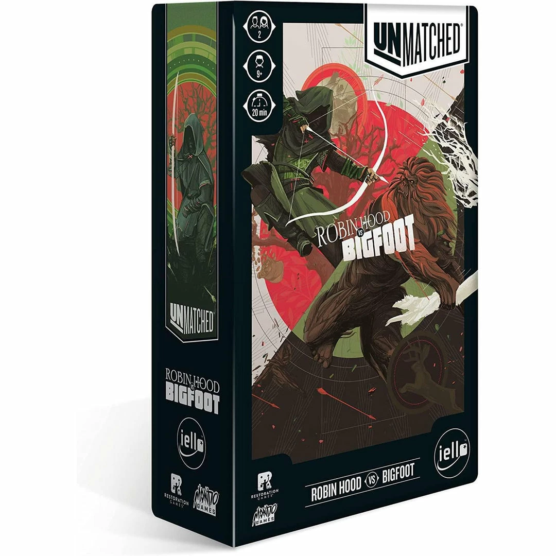 Unmatched is an asymmetrical miniature and card game where players battle it out to be the no. 1 fighter! In Robin vs. Big Foot, the legendary outlaw Robin Hood and the mythical beast Big Foot battle it out for supremacy! Each hero has a unique deck of cards that fits their fighting style – but remember, in the end, there can only be one winner Mix and match fighters from any Unmatched set! Try the Unmatched – Battle of Legends, Vol. 1 set to continue the brawl! Suitable for 2 players, aged 9+