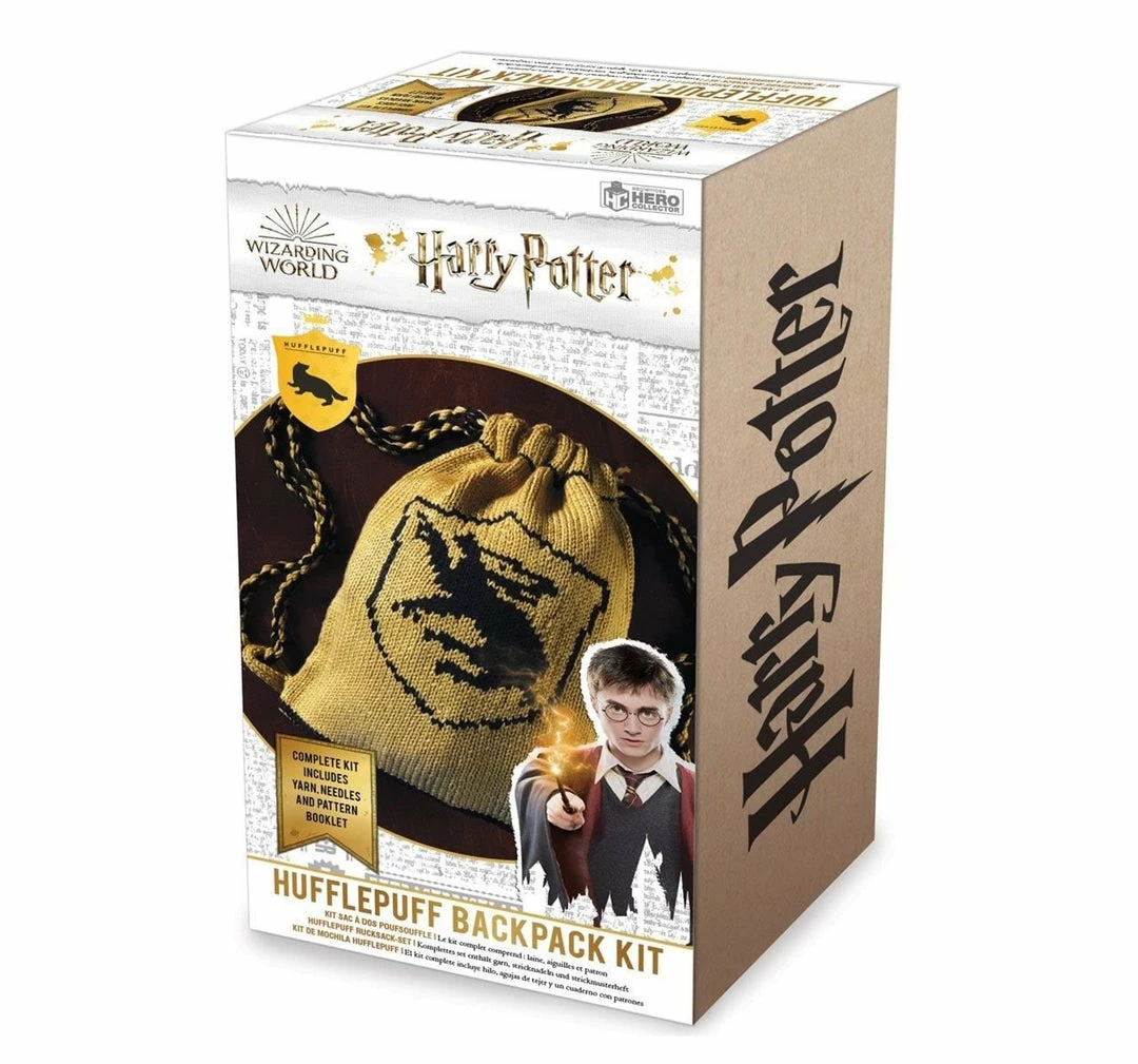 Inspired by the magic of Hogwarts, this kit contains everything you need to make a reversible drawstring backpack in the Hufflepuff colours and with the house emblem. Not a toy – to be used by experienced knitters only Kit includes: Yarn (each 100% Acrylic) – – 3 x 25g Yellow – 3 x 25g Black Pair of 3.5mm Knitting needles Yarn needle Breakaway clasps Pattern instructions – Age Level – 14+ – Difficulty level – Intermediate