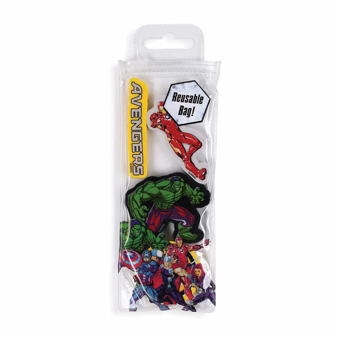A set of 4 awesome Marvel Avengers themed erasers, in a reusable bag