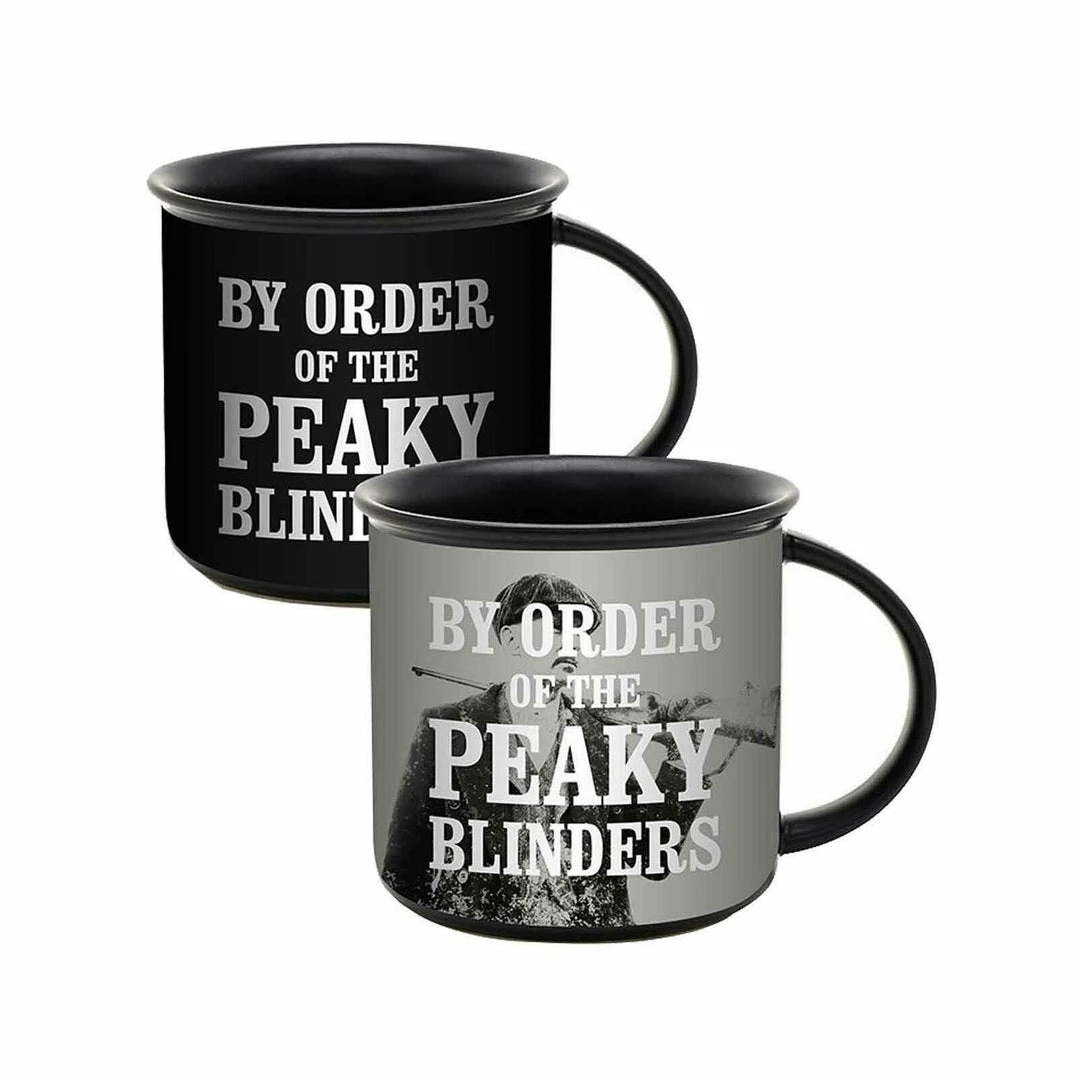 Start your day like a real gangster with this Heat Change mug inspired by the Peaky Blinders. When cold, the mug shows the iconic quote βBy Order of the Peaky Blindersβ. When hot liquid is poured in, the mug transforms to reveal the brothers Thomas and Arthur Shelby. As the mug empties, it returns to its original state as it cools.