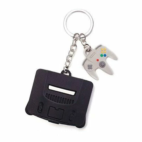 his Nintendo 64 3D keychain features a lovely model of the gaming system and a replica of the Nintendo controller attached to a sturdy metal chain. Flexible and durable, this keychain is perfect for bags, zippers or your set of keys.