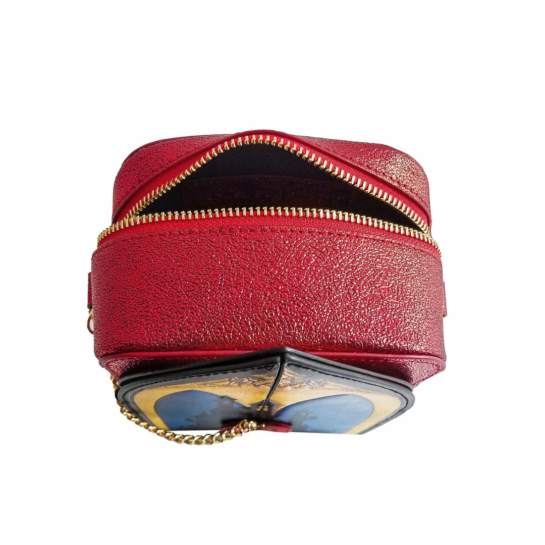 Officially licensed Disney merchandise by Danielle Nicole Design inspired by the Evil Queen from Disney’s Snow White Features a revealing exterior element on the front 19 (h) x 13.5 (w) x 8.5 (d) cm, 59 cm Strap Spot clean only Prepare to become the most stylish of them all with this Evil Queen Cross Body Bag by Danielle Nicole. Inspired by Disney’s Snow White, the bag features a wraparound zip closure, interior pockets and a revealing exterior element. Remove the dagger from the heart on the front, and reveal the Evil Queen herself. This uniquely shaped bag is full of villainous surprises.