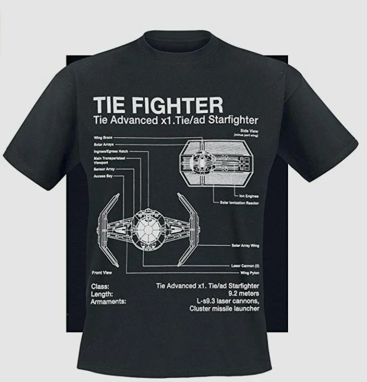 Star Wars T-Shirt Tie Fighter Blueprint with following features: Color: black, Material: 100% cotton, Pattern: plain 100% Cotton Regular