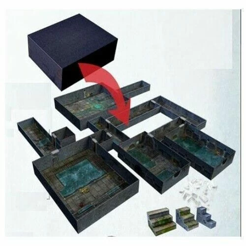 Tenfold Dungeonโข is the solution for compact and affordable tabletop terrain to use with any dungeon-crawling board games, RPGs and wargames, all made from the box it comes in. The TFD system provides a fully immersive, right-out-the-box 3D setting for your D&D, Pathfinder, Starfinder and many other RPG games. With amazingly detailed art printed in every box (inside and out), and 1ร1โ grids discreetly layered into the environment, Tenfold Dungeon provides a high-quality, atmospheric play space for all your tabletop needs. With its compact, lightweight design and inside-the-box capacity, itโs never been easier to take your high-octane adventures with you โ wherever you go. Pack your rules, your minis and your dice inside the very boxes that will turn into your 3D scenery!