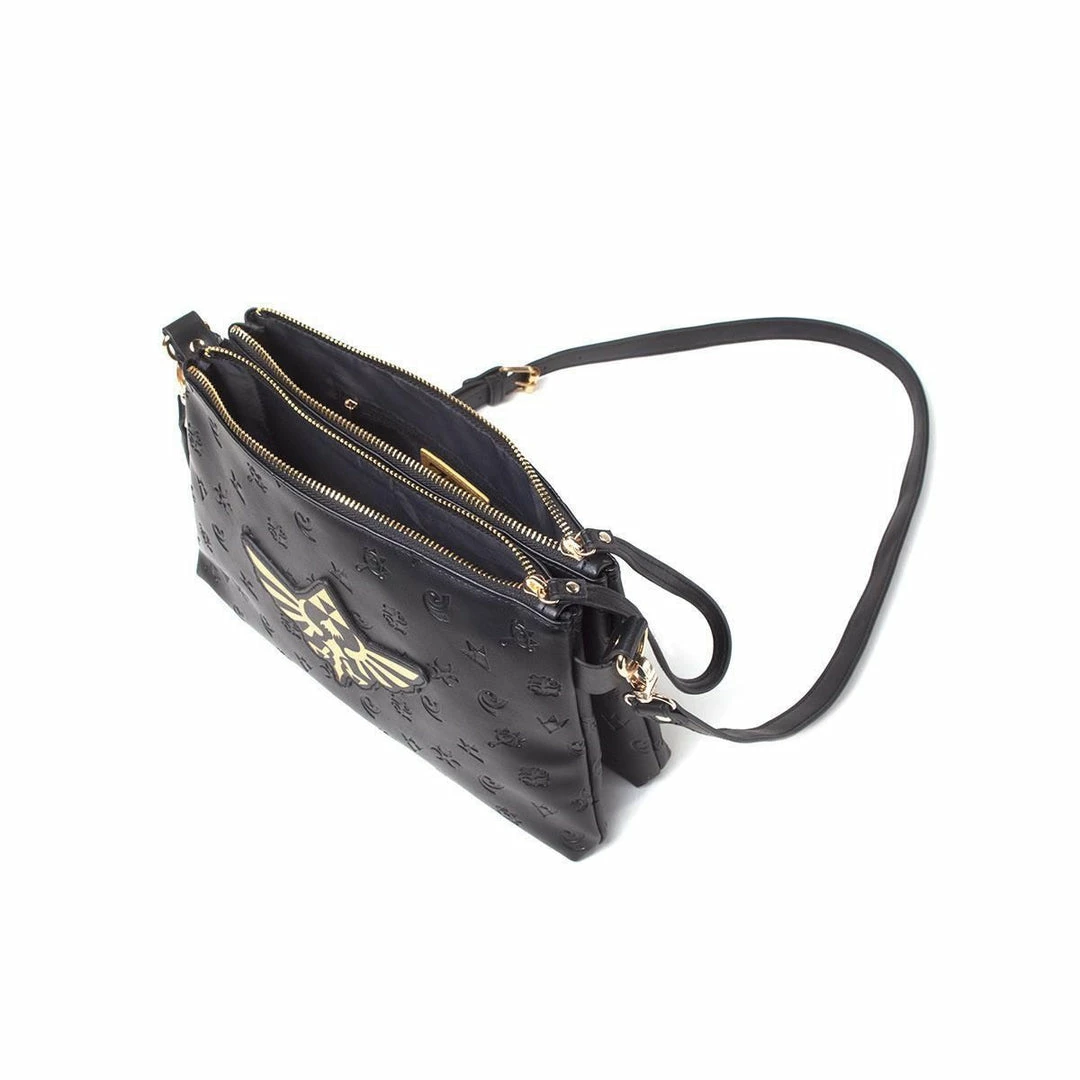 Go forth and venture on your quest with this Legend of Zelda Hyrule Shoulder Bag. Featuring the seal of Hyrule printed in gold, this bag also features a pattern debossed into the 100% vegan leather material. Great for all of life’s adventures.