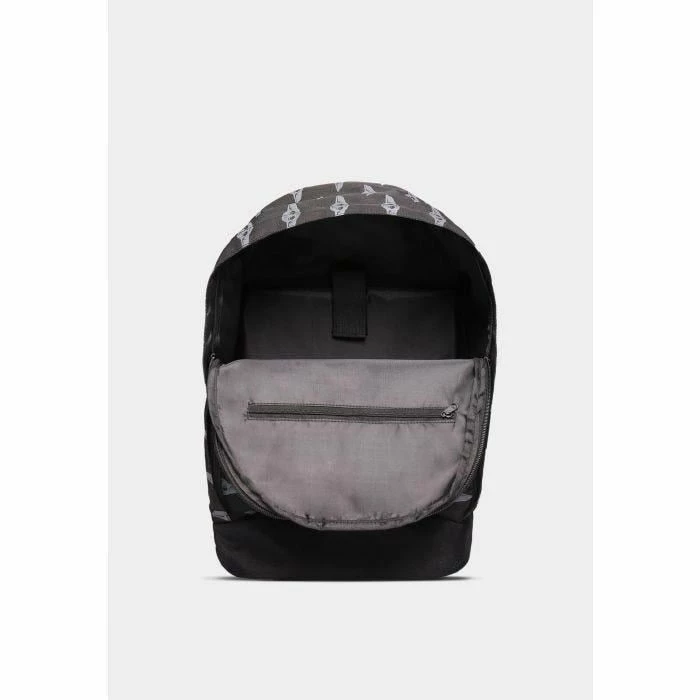 Bounty Hunting is a complicated profession, so protect all your tools by carrying our backpack with reflective strap with classic debossed rubber patch on the front, polyester fabric with all-over screen-print, fun special “tech” design elements on woven front. logo label on the back strap inside includes padded laptop sleeve 17 inch and zipper pocket, quilted back with foam fabric, and woven logo tag on the back strap.
