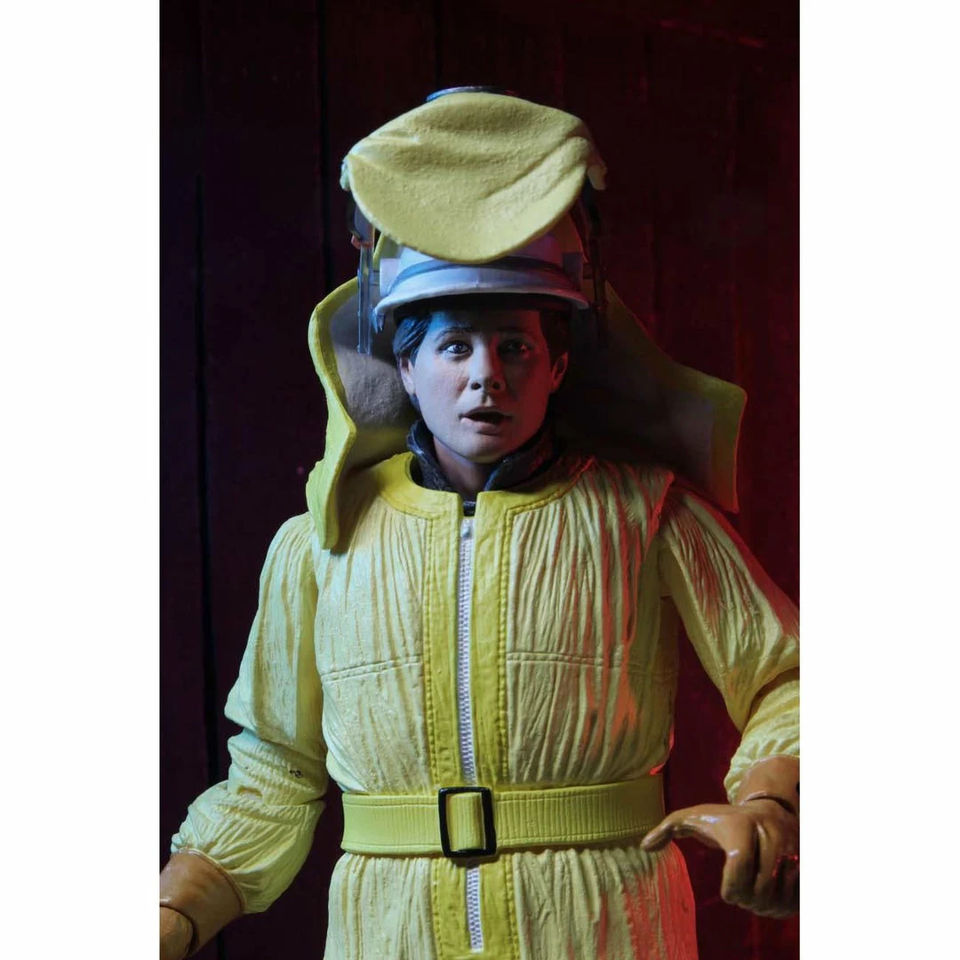 Itโs time to hop in the time machine and go back to 1955! NECA is thrilled to present the Ultimate Tales From Space Marty McFly from Back To The Future featuring the official licensed likeness of Michael J. Fox. Equipped with a hair dryer and brain melting device known as a cassette player, Marty is dressed in a hazmat suit with interchangeable heads & hoods to portray his appearance as the visitor from planet โ Vulcanโ.
