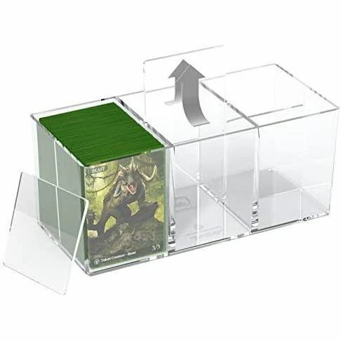Ultimate Guard Stack´n´Safe Card Box 480 capacity: 480 cards in sleeves (approx. 930 cards without sleeves) designed for 6 decks of up to 80 cards in sleeves each very high clarity without any coloring (no blue cast) 3 removable dividers