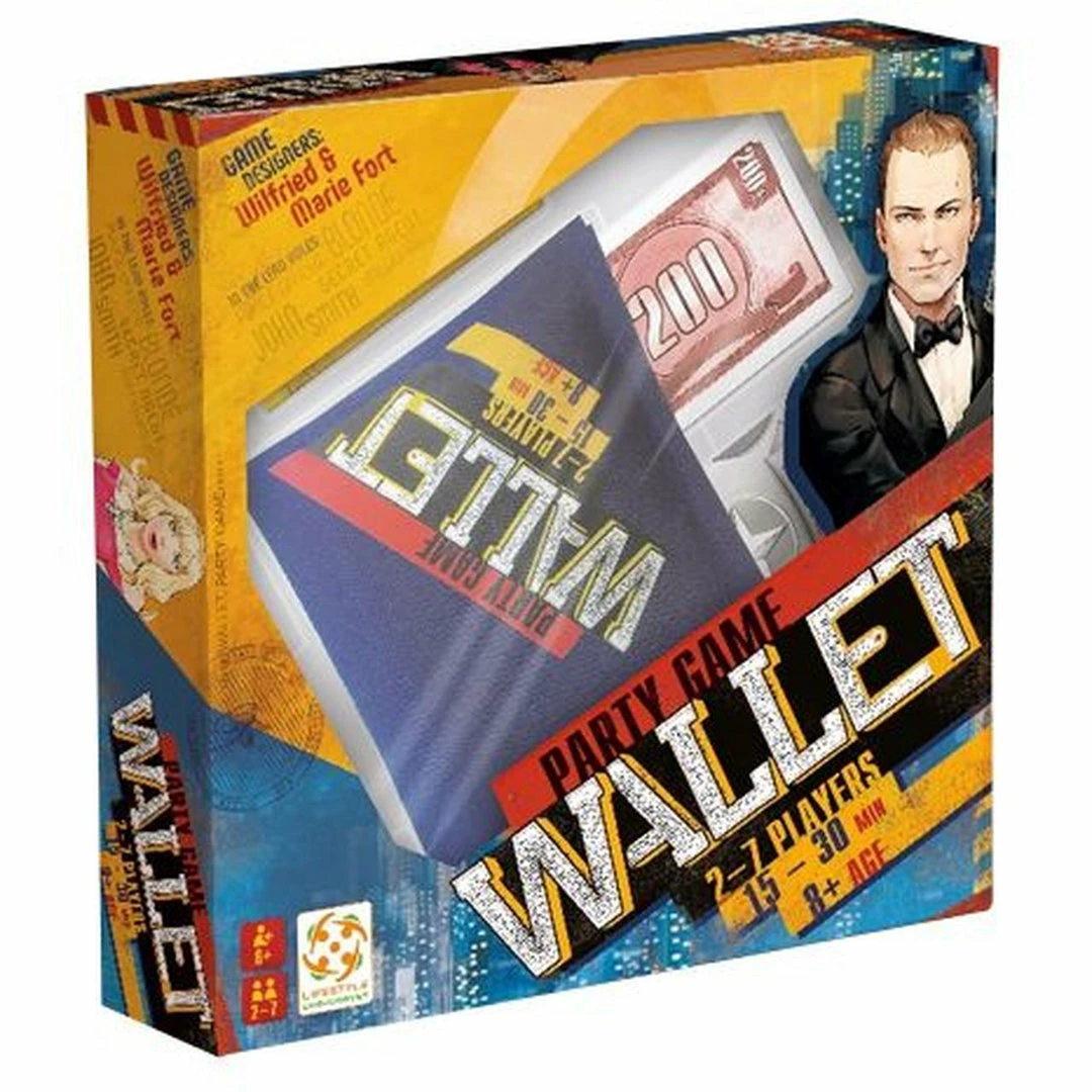 A birthday party hosted by the mafia boss was roaring fun until the police knocked at the door. While getting away on his private helicopter, he dropped his precious wallet. Now what will you all do with it? In Wallet, players are the guests rummaging through the wallet looking for an ID (that’ll make them seem innocent in the eyes of the law) and some cash (you can’t take too much – it will look suspicious!). During your turn, you choose one action: take a card from the wallet, hide a card in the wallet, flip a timer card (bringing the round closer to its end), or buy an ID card. You may also use your special cards to spoil your opponent’s play. Strategy, bluff, unexpected events… You need to have a perfect hand as fast as you can – try to be both innocent and rich by the end of the round! Will you be found guilty or manage to escape the hand of justice with the most cash? For Ages: 8+ WARNING: Choking Hazard-Small Parts. Not for Children under 3 yrs.